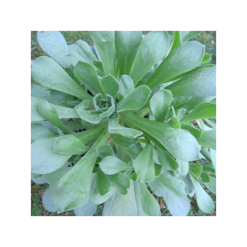 Forme complètement verte de l'Aeonium 'ballerina', sans marges blanches. De petite taille, il développe des feuilles très souples et duveteuses.