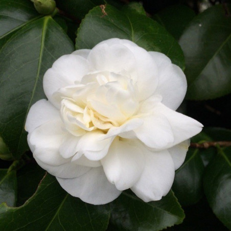 Le premier Camellia japonica blanc à fleurir, après les sansanqua, de novembre à février. Très poussant, il présente un port en boule et de très belles fleurs doubles blanches avec quelques reflets jaunes.