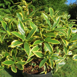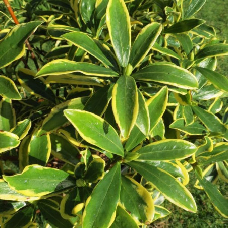 Daphnée compacte à petite végétation très lumineuse. Encore plus parfumée et plus panachée que le type, avec une floraison hivernale rose pourpre. -15°C. Vente de beaux sujets en pot de 3 litres, 30/40 cm hors pot.