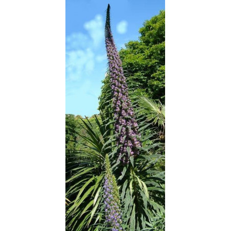 Vipérine des Canaries, impressionnante fleur colonnaire de 4 mètres de haut ! -5 à -8°C. Vente en pots de 3 litres.