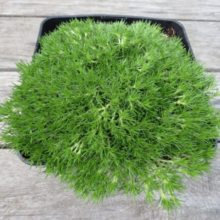 Cette vivace australienne forme un coussin tapissant de couleur vert moyen, original en couvre-sol pour jardin japonais, miniature, ou même pot.